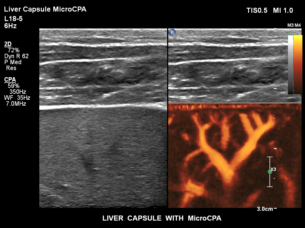 Датчик eL18-4 обеспечивает превосходное разрешение 2D, а также проникновение, необходимое для уверенности в диагностике на акушерских обзорах первого и второго триместра, а также на гинекологических осмотрах. Технология MicroFlow Imaging, доступен на eL18-4, — это запатентованный режим, созданный для выявления низкого объема и низкой скорости кровотока, обнаруженного в сосудистой оболочке плода, плаценты, матки и яичников.